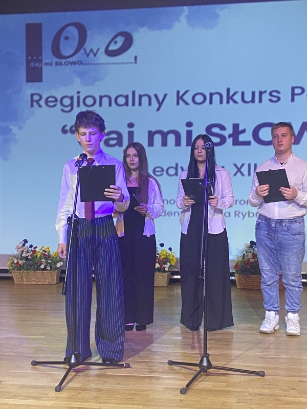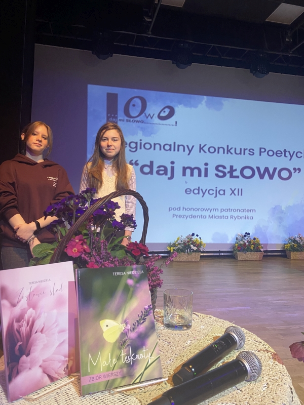 Nasza szkoła wraz z ZSB w Rybniku organizuje Regionalny Konkurs Poetycki ...daj mi SŁOWO, którego finał co dwa lata naprzemiennie odbywa się w Wodzisławiu Śląskim lub, jak w tym roku, w Rybniku. Honorowy patronat nad konkursem objął w tym roku Prezydent miasta Rybnik. Uroczystość wręczenia nagród odbyła się 10.kwietnia 2026 w rybnickiej "Przygodzie".