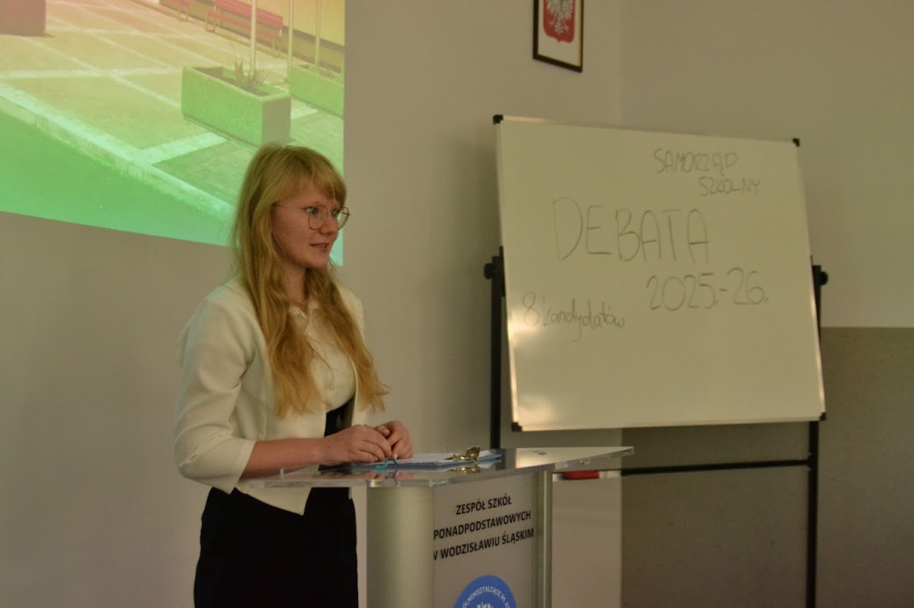 29 września zapisze się złotymi literami w kronice naszej szkoły – właśnie tego dnia odbyła się pierwsza w historii debata kandydatów do Samorządu Uczniowskiego. Było to wydarzenie wyjątkowe, nowoczesne i pełne emocji. Dzięki transmisji online debatę mogli śledzić uczniowie całej szkoły, a na sali zgromadzili się przedstawiciele klas IB i IIA, tworząc atmosferę spotkania na najwyższym szczeblu.